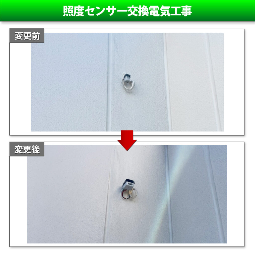 照度センサーの交換電気工事は、電気工事士の資格が必要ですが、当社では経験豊富なスタッフが迅速かつ丁寧に対応しています。